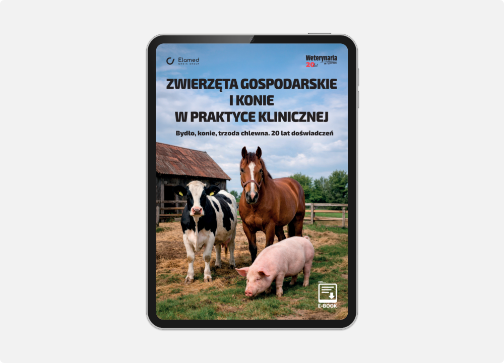 Jubileuszowy e-book „Zwierzęta gospodarskie i konie w praktyce klinicznej. Bydło, konie, trzoda chlewna. 20 lat doświadczeń” to przekrojowa publikacja przygotowana z okazji 20-lecia czasopisma Weterynaria w Terenie.